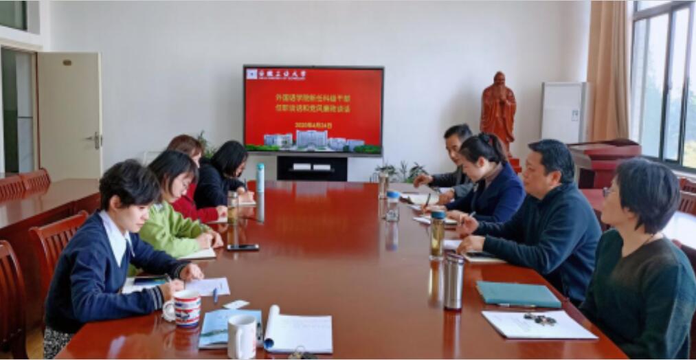 4月24日下午,76net必赢线路检测中心召开了新任科级干部任职谈话和党风廉政谈话会。学院领导班子成员和全体新任科级干部参加了会议。会议由学院党委书记黄宇弦主持。