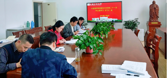 11月6日下午,76net必赢线路检测中心党委在学院会议室召开2019年第二十一次中心组学习扩大会,学院领导班子成员、党委委员,全体支部书记、科级干部参加了会议。院党委书记黄宇弦主持会议。