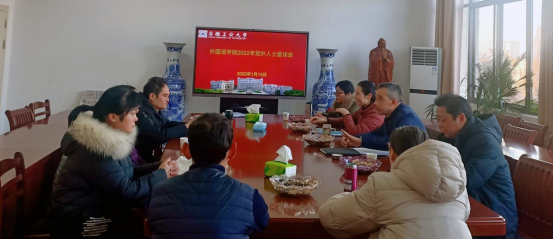 学院党委副书记、院长曹瑞斓从建党100周年大背景和学院建院15周年小背景出发,梳理了学院2021年党建、教学、科研、学生、综合管理等主要工作,突出了学院扭转人才流失逆转、开创专业新局面、开拓校企合作交流面、扩大教职工受益面等亮点工作,介绍了学院2022年工作思路。与会各民主党派和无党派教师代表积极发言,从大外教学改革、课程和教材建设、教材选择和教学内容与学时分配等方面提出了建议。