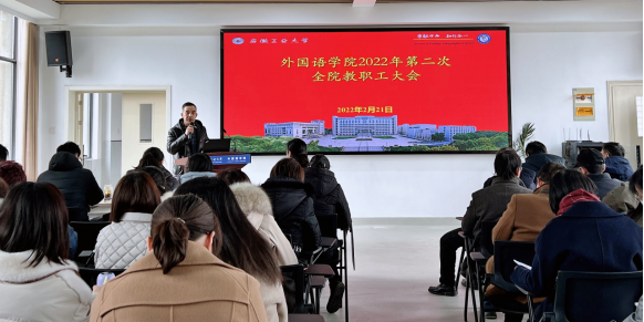 2月21日下午,76net必赢线路检测中心在教一401多功能报告厅召开了2022年第二次全体教职工大会,学院全体教职工和部分学生代表参加了会议,会议由院党委书记黄宇弦主持。