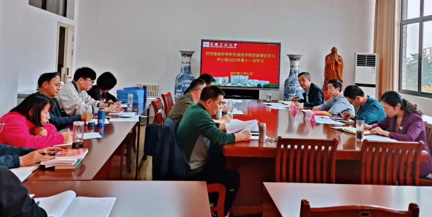 会上黄宇弦代表学院党委理论学习中心组汇报了学习总体情况,与会人员围绕学习贯彻党的二十大精神,结合自身工作实际进行了交流研讨,认为党的二十大精神为我们做好下一步工作提供了奋斗方向和根本遵循,我们将认真学习贯彻党的二十大精神,全面落实立德树人根本任务,牢记“为党育人、为国育才”的使命,当好中国文化传播者和传播人才培养者,培养向世界讲好中国故事,更好传播中华文化,善于开展经济社会建设和全球治理的科技人才。