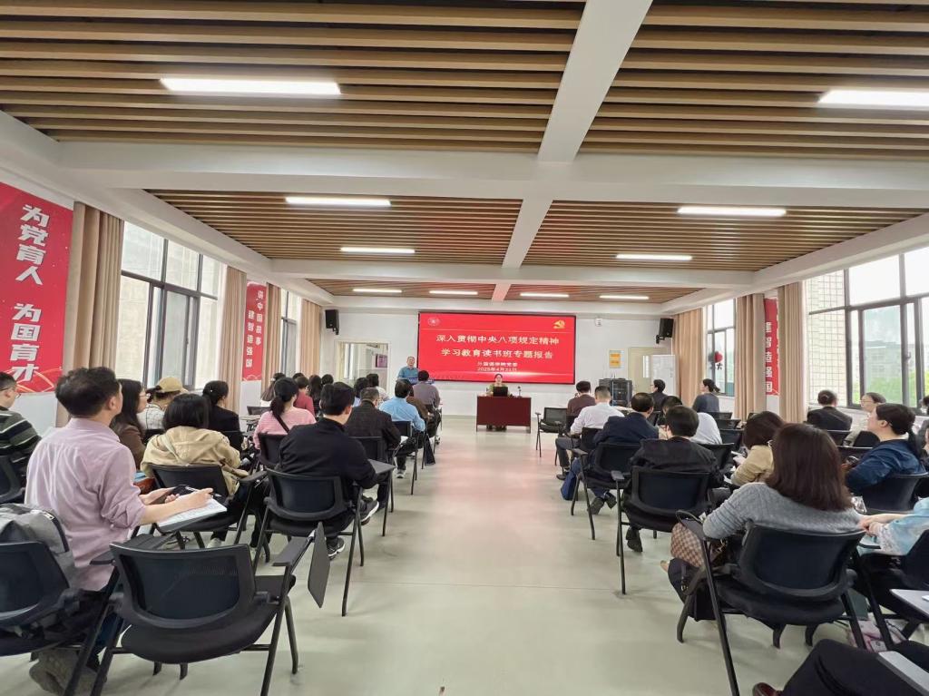 王成勇在主持报告会时指出,专题辅导报告既有政治高度、思想深度,又有学理厚度、文化温度,更有实践向度、落实维度,内涵丰富、深入浅出、指导性强,为学院党委中心组成员、各支部书记、全体党员师生下一步纵深推进学查改,坚持开门教育,指明了方向、理清了思路、明确了路径。他强调,全院师生党员要深刻领会中央八项规定及其实施细则精神的政治属性、纪律属性和实践要求,结合学院党委工作安排,进一步深入学习《习近平关于加强党的作风建设论述摘编》、中央八项规定及其实施细则精神,观看警示教育片,围绕“深入贯彻中央八项规定精神学习教育,以优良作风推动学院高质量发展”主题开展深入研讨,切实以学习教育的新成效推进学院高质量发展。