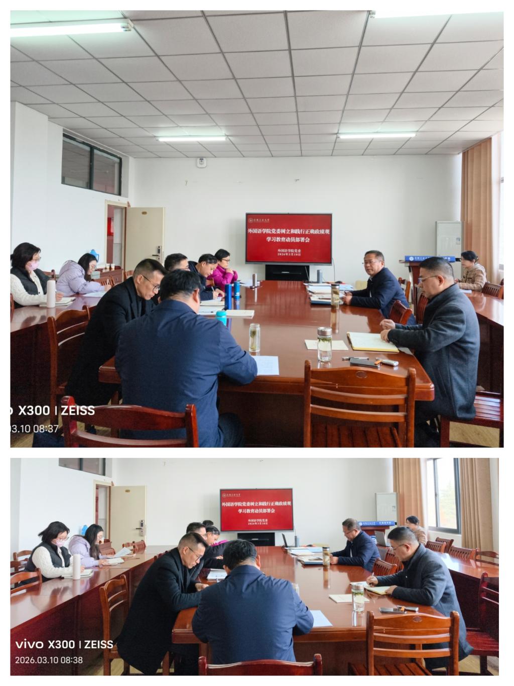 会议传达学习了中央党的建设工作领导小组会议、中共中央办公厅《关于在全党开展树立和践行正确政绩观学习教育的通知》、安徽省委常委会扩大会议、校党委学习教育实施方案及学校动员部署会等会议精神和相关要求,深入领会关于开展树立和践行正确政绩观学习教育的核心要求与工作部署。