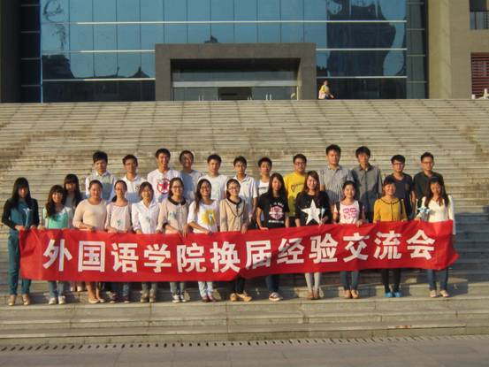 会议上,首先由本届学生会主席赵继敏同学进行发言,他主要回顾了曾经的工作经历、心路历程以及当初的梦想,向同学们介绍了各个部门的部长,并提出了学生会对部长的具体要求。紧接着,上届学生会主席陈帅也具体地对自己的工作做了回顾与概括,包括对过失的反思、传授自己在团委学生会期间的活动经验,同时他也对对团委学生会未来的规划以及对新一届部长的到任提出了自己的祝贺与期望。而后,在欢快的氛围下座谈会放映了由组织部采集制作的《外国语新老经验交谈会》的纪录片,纪录片中用图片展现出了新招干事的朝气蓬勃、学长学姐们的认真负责、获得成功的喜悦以及我院曾经举办的各项活动,让在座的团委学生会成员感触颇深。最后,组织部成员将本届副部写给前任部长的信件交给了在座的各位前任部长,进一步温暖了现场的气氛,为在场的人留下了一份不舍与感动,会后全体人员在图书馆门前进行合影留恋。