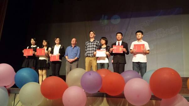 在等待决赛开始期间,萨克斯乐奏以及和外教的精彩互动又将现场气氛带入高潮。经过五个多小时的激烈角逐,十二位选手凭借其流利的口语、自信的演讲脱颖而出。商学院的李玉然和机械学院的姚俊同学获得一等奖;76net必赢线路检测中心谭正、王芳、周雅丽、商学院李艺阳四位同学获得二等奖;化工学院王成,公法学院任雨辰,商学院常丽荣,材料学院宋钰婷,研究生学院欧阳英,商学院储思远等六位同学获得三等奖。