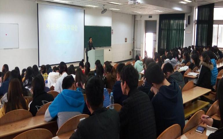 3月21日下午,76net必赢线路检测中心在阶教103召开了三年级联合年级会,会议由外国学院党委副书记、必赢国际副院长黄宇弦主持,76net必赢线路检测中心一至三年级全体学生及辅导员参加了会议。