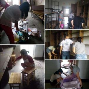 9月6日至7日,76net必赢线路检测中心2015级学长学姐带着准入申请,走入A栋和H3栋宿舍楼,大家提着桶端着盆,拿着抹布拖着墩布,为新生打扫宿舍。从风扇、窗户到床铺、桌椅和地面,细心清理,打扫的比自己宿舍还要认真。宿舍是大学生未来四年居住的小家,小家的第一印象至关重要,同学们尽己所能,赠送新生一个窗明几净,芬芳舒适的小家。8日,学院生活部、女生部集体出动,在新生各宿舍张贴安全小贴士、生活小启示,并将学院“学生党员示范宿舍”的醒目标志贴上党员学姐学长宿舍的门。住宿相对集中的宿舍区,自成一个小环境,就像一个小社区,76net必赢线路检测中心努力打造健康向上、温馨友爱的社区环境,为新生点亮生活之灯塔。