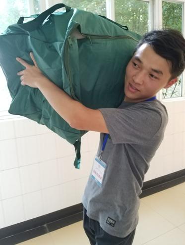 下午的阳光格外刺眼炙热,来自76net必赢线路检测中心的志愿者刘珊妹说:“中午我来的特别早,心情特别兴奋,这是我第一次参加迎新。”身着红色志愿者服装的她阳光下笑容灿烂。不一会来了一位新生,她赶忙在路口为新生指路,带领他们去迎新点办理报到手续;二话不说的搬运起了行李,新生的行李箱一般都塞满了东西,鼓鼓的,沉极了,她倒是一点不嫌重,沿途中还热情的为新生介绍校园中的情况。新生的宿舍在五楼,她就帮忙把沉重的行李搬到五楼,一颗颗汗珠从额头滚下,没说一个“累”字,笑容一直挂在脸上。直到将新生送到宿舍,她又不停歇地下楼为学妹领取生活用品。这来来回回的奔波,却在她娇小的身上一点也没体现出来。她的热情似乎没有一丝褪减。