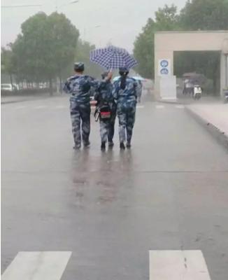军训不仅教会了团结,也教会了奉献。“走,我们把女生送到食堂那边躲雨,不然全部都淋湿了。”17级男生们一边站在棚子外面,一边大声说道。话音刚落就看到男生们主动从棚里走出来,从两边将棚子抬了起来,“女生们在棚子里别出来,跟着我们的步伐,一起去食堂避雨”男生们说道。大雨中,男生的衣服全部湿透,但是他们无暇顾及,擦了擦脸上的雨水,奋力地抬着棚子向食堂方向走去。院团委学生会主席则不顾暴雨雷电一直在雨中一趟趟护送,指挥。最终全院新生顺利躲进附近研究生食堂避雨,并在雨势减弱后全部被护送回宿舍。