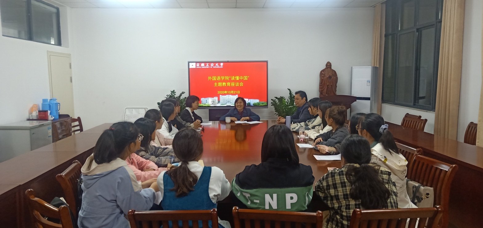 10月20日晚,76net必赢线路检测中心在教一407召开“读懂中国”主题教育座谈会,校关工委刘爱萍老师应邀到会指导,院党委副书记陈庆林、辅导员以及学院学生代表参加了座谈会。