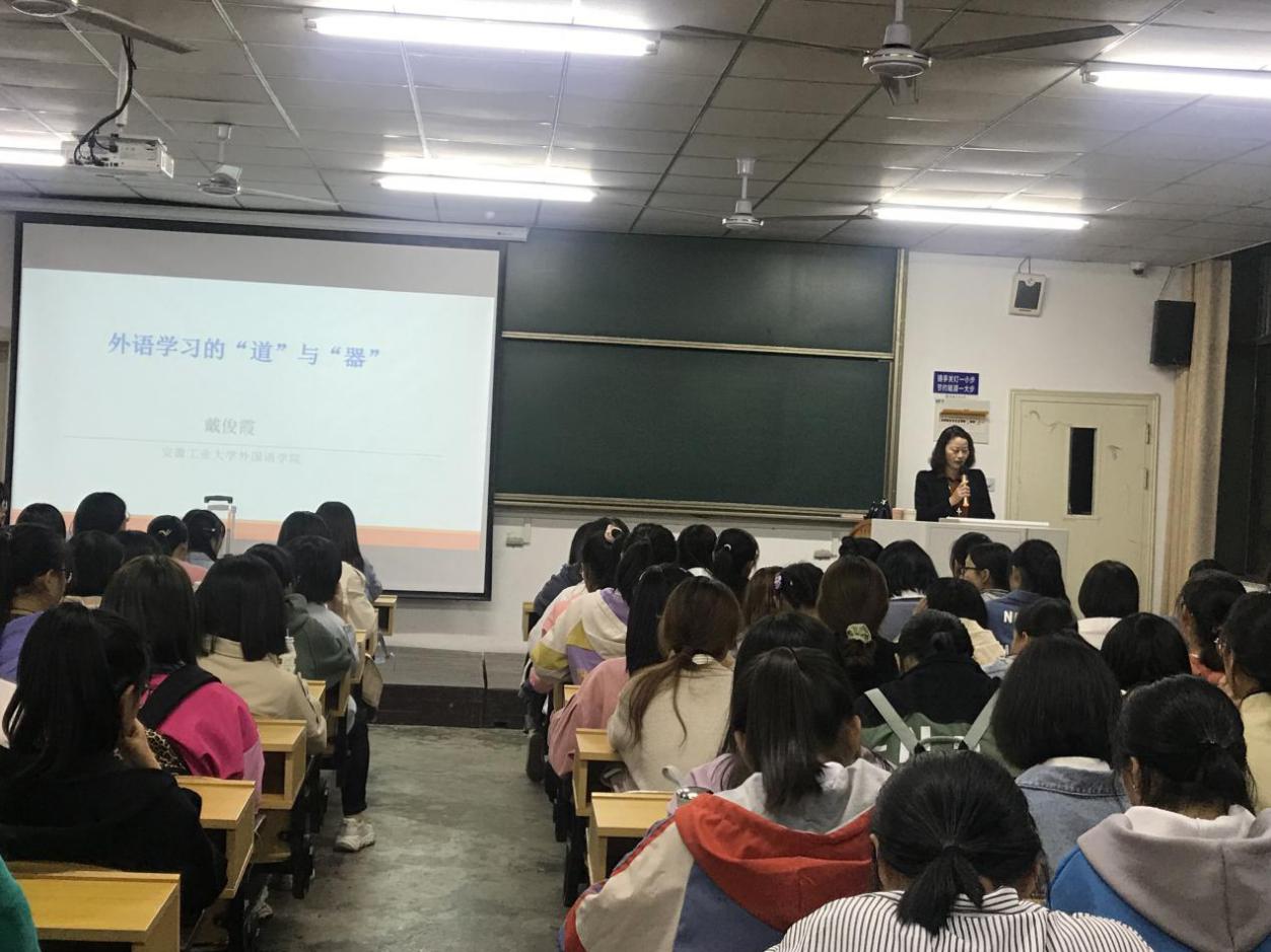 10月23日晚,76net必赢线路检测中心在教一401举办了外语学习的“道”与“器”讲座,本次讲座特邀76net必赢线路检测中心教授戴俊霞主讲,2020级新生聆听了本次讲座。