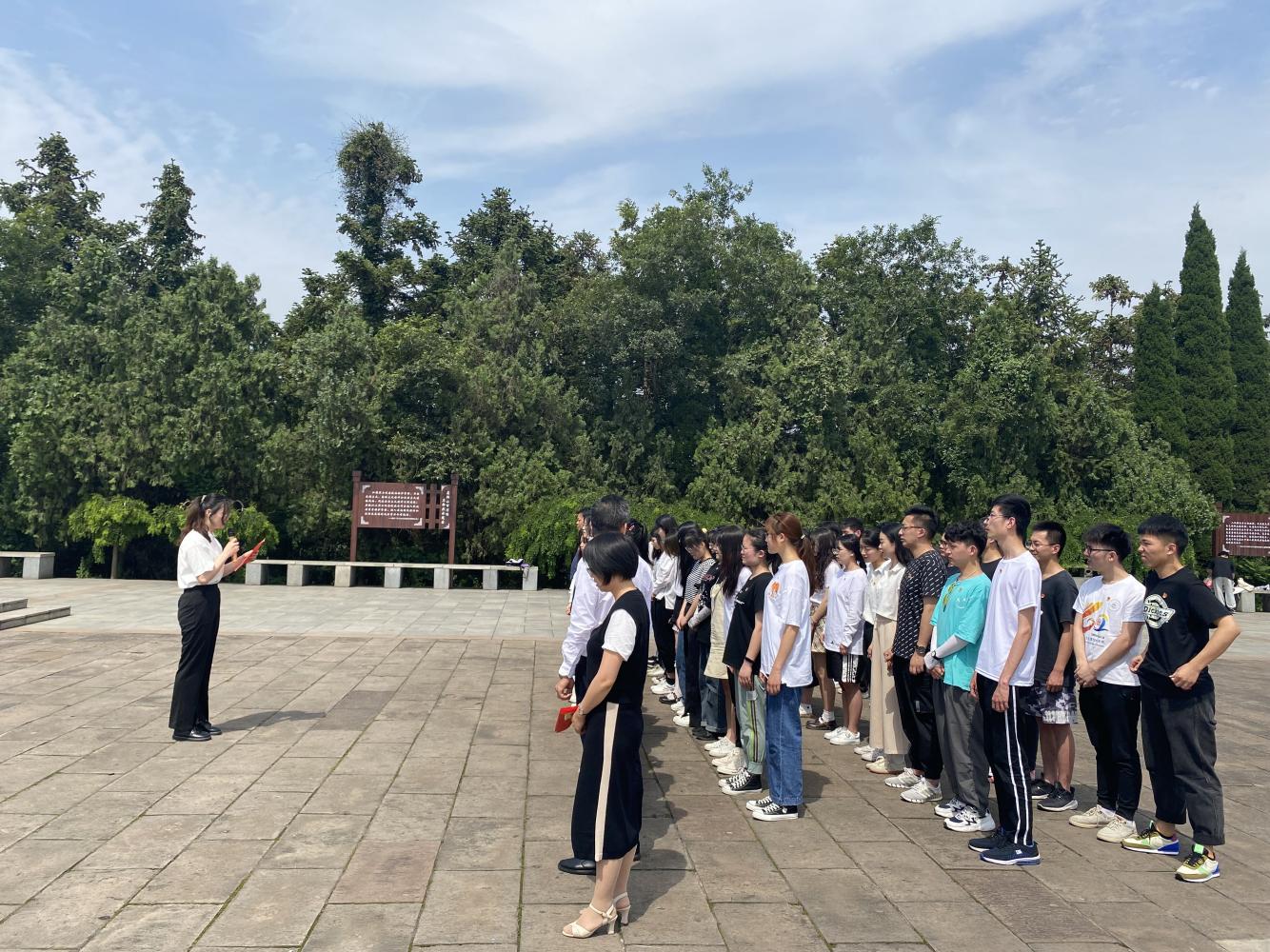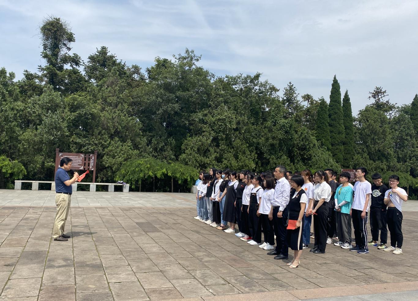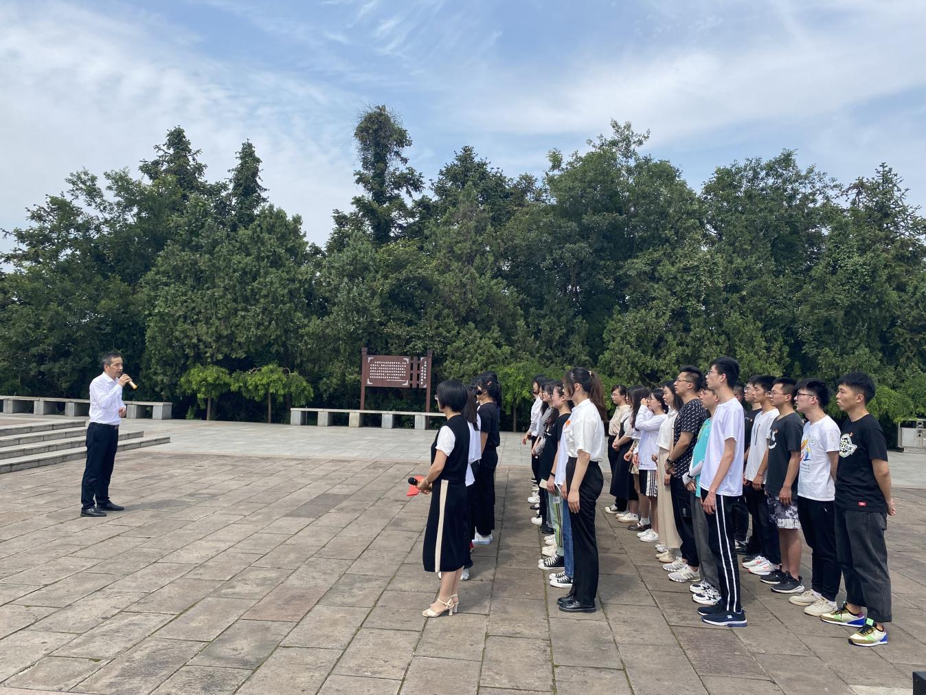 在党的百年华诞来临之际,为将党史学习教育引向深入,增强新发展党员的责任感、使命感,5月31日下午,76net必赢线路检测中心学生党支部前往濮塘革命烈士陵园开展“缅怀革命先烈”党史学习教育暨新党员入党宣誓活动。学院党委书记黄宇弦、副书记陈庆林、全体辅导员以及2021年新发展的学生党员参加了活动。