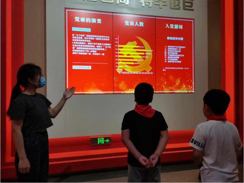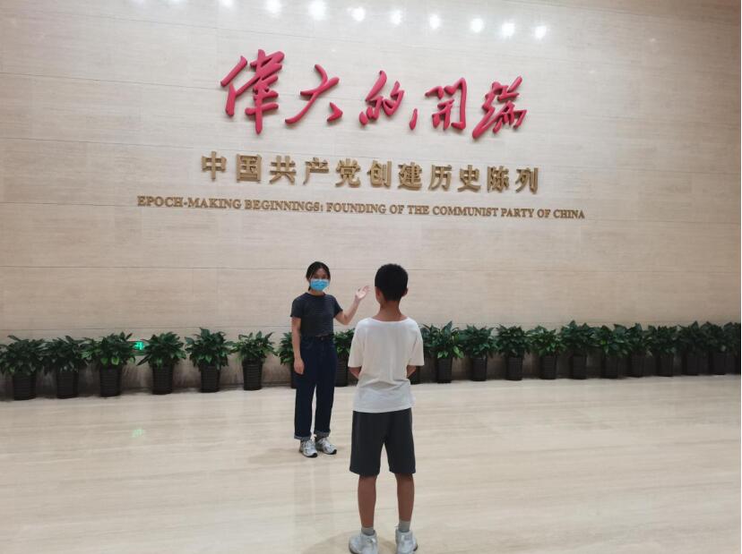 宣讲队队员在参观的同时向其他游客介绍着波澜壮阔的百年风华,透过介绍文字,循着时间脉络,感慨于苦难深重的旧中国,一代代仁人志士的奋斗与牺牲,由此更清晰地感悟:为什么只有中国共产党才能救中国!