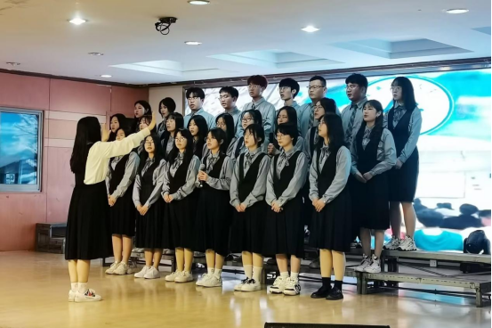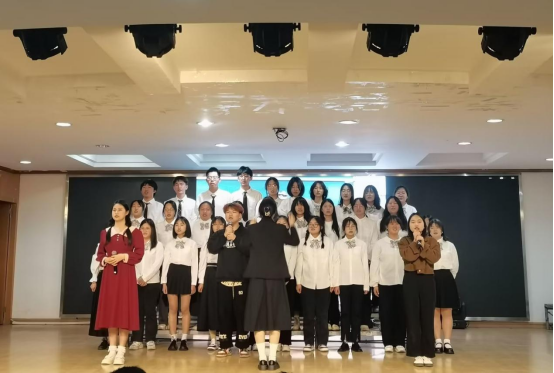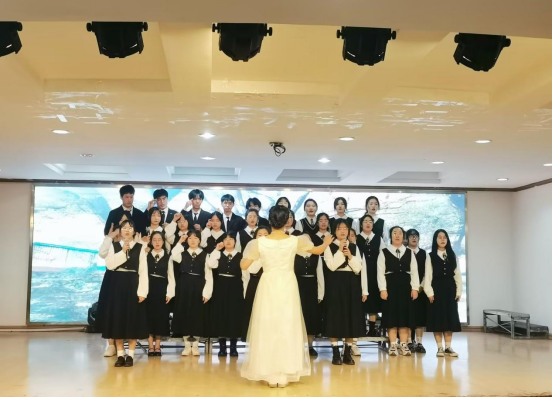 舞台上,各班级带着精心准备的节目依次上场。学生整齐的服装和饱满的精神状态令人眼前一亮,比赛各班级自主编排歌曲表演形式,有的班级充分发挥具有音乐特长学生的优势,紧紧围绕班级文化进行展示;有的班级融入手语、道具等艺术表现形式展示班级特色,比赛精彩纷呈,最终评选出一、二、三等奖。
