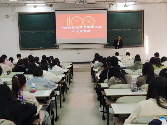 夏玉钦以“中国共产党百年辉煌历程和优良传统”为主题,以中国共产党的发展为时间轴,通过结合历史及时事,深入浅出,对党的指导思想和方针路线进行了系统的阐述。最后,夏玉钦阐释伟大建党精神的内涵,号召同学们要传承好中国共产党人的伟大精神谱系和百年优良传统,内化于心、外化于行。