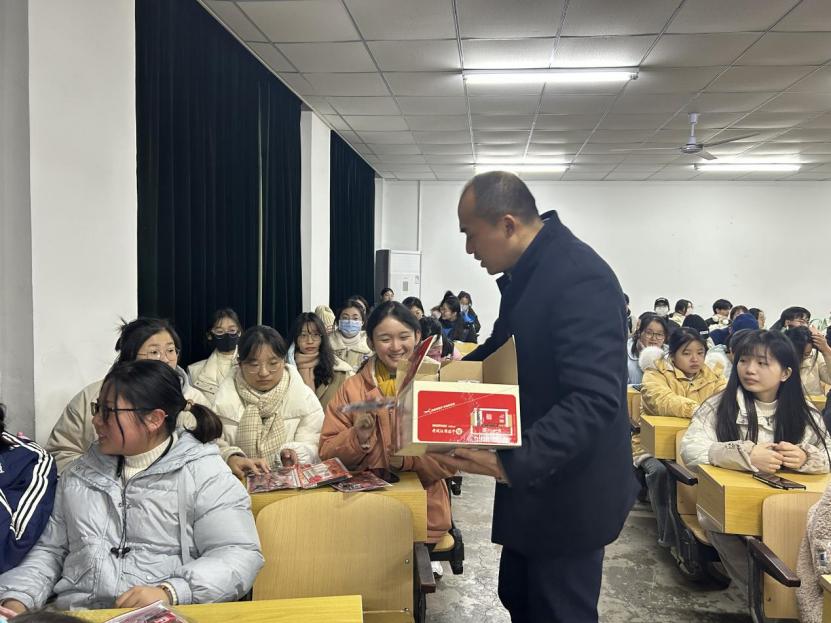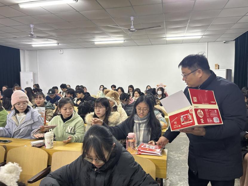 院党委书记夏玉钦结合自己的求学经历,勉励广大同学。他表示,考研是一次提升自我、改变命运的机会,一鼓作气,考出理想成绩,实现自己的人生梦想。他围绕“坚持、加油、劳逸结合”三个关键词与在场同学进行了深刻交流,他指出,“行百里者半九十”,同学们已经走完了大部分艰苦的路程,只剩“最后一公里”,唯有咬牙坚持,才能到达胜利的彼岸;越到最后时刻,越要奋勇前行,在最后的冲刺阶段,他希望每一位学子必将沉稳自信、豪迈亮剑,以不懈的努力创造奇迹,决胜考研路。院党委副书记施铜兴提醒同学们在备考期间一定要严格按照自己的学习计划去一步一步执行,最后二十余天备考注意事项,保持愉悦积极的心态,不要给自己太大的压力,保持心情舒畅,尽自己最大的努力去备考,相信会有好的结果。活动最后,学院为考研学子送上了精心准备的赋有美好祝愿的考研加油包。