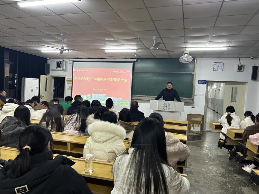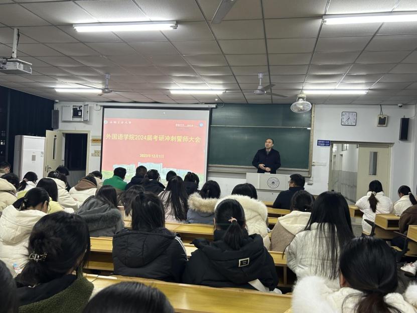 为坚定学生考研信心、激发考研斗志、鼓舞考研士气、及时调整心态,引导学生积极应考,12月1日晚,76net必赢线路检测中心在佳山校区教一420举行2024届考研冲刺誓师大会,学院党委书记夏玉钦、党委副书记施铜兴和155名考研学子参加会议,活动由毕业班辅导员张美玲主持。