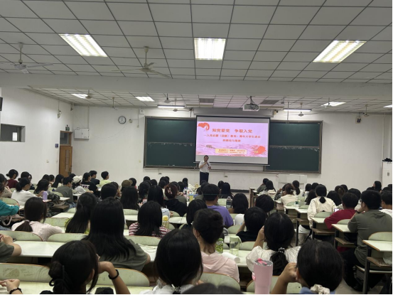 会议伊始,胡源申教授讲述了党员的条件、权利和义务,引导大学生们如何以实际行动争取早日入党。他号召大家要承担起青年责任,树立正确的世界观、人生观、价值观。同时他教育同学们必须端正入党动机,严于律己、学史明理,坚定理想信念,向榜样学习,提高自己的政治素养。最后,他勉励大家要珍惜青春,带着理想去学习,不断提高自身综合素质以实际行动积极向党组织靠拢,为实现中华民族伟大复兴的中国梦贡献青春力量。