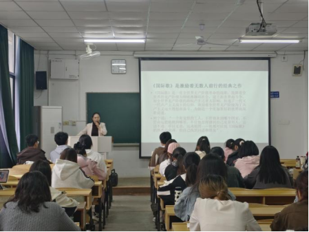 沈雁老师带领同学们重点学习了国际歌的创作背景和发展历史,了解了国际歌与国歌的渊源,加深了同学们对国际歌和国歌的认知和感悟。同学们认真学唱,将自己对党和国家的情感寄托于歌声之中。