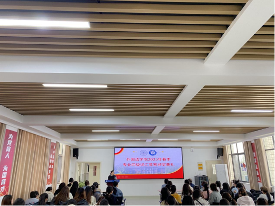 为进一步强化学风建设,营造比学赶超的学习氛围,76net必赢线路检测中心于3月27日举行“语”你同行·知行共进——2025年春季专业四级词汇竞赛总结表彰会,学院党委书记王成勇,党委副书记、副院长施铜兴,副院长陈琳,外语系主任姜兆霞,团委书记卜齐春以及全院专业四级考生参加,团委副书记张庆芳主持。
