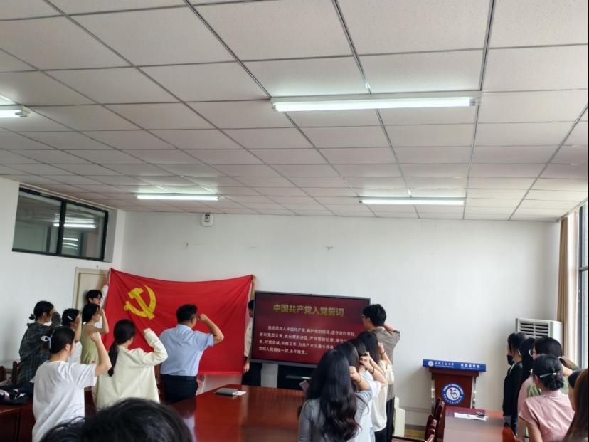 随后,全体毕业生党员面向党旗,重温入党誓词。在座谈交流环节中,毕业生党员代表踊跃发言,分享在校期间的成长感悟,并围绕“如何在新征程上展现党员担当”展开热烈讨论。