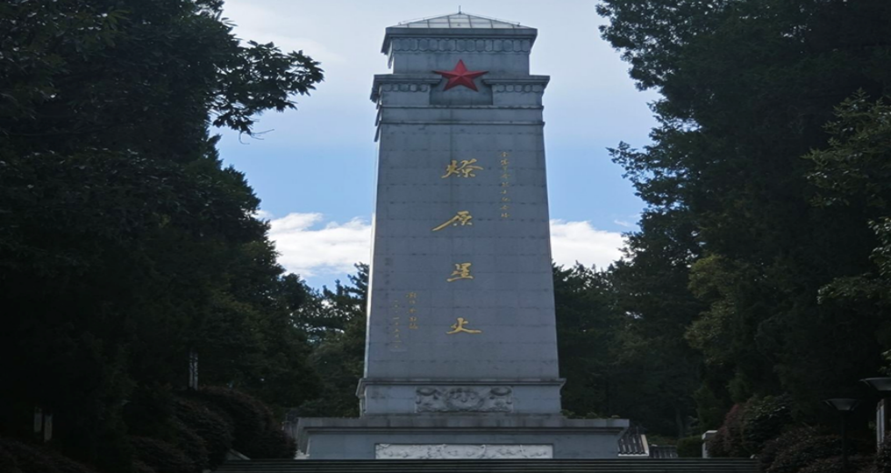 沿着广场中轴线前行,来到革命烈士纪念塔前。塔身“燎原星火”四字金光夺目,高耸入云,象征着从金寨燃起的革命火种如星火燎原般燃遍神州。怀着无限崇敬,队员们缓步趋近,凝望塔身:基座浮雕栩栩如生,刻画出烽火岁月里的壮烈鏖战与先烈们的血性英姿。在圣洁的塔前,全体实践队员肃立默哀,深切缅怀。这一刻,历史的回响激荡心间,血脉的奔涌唤醒灵魂。