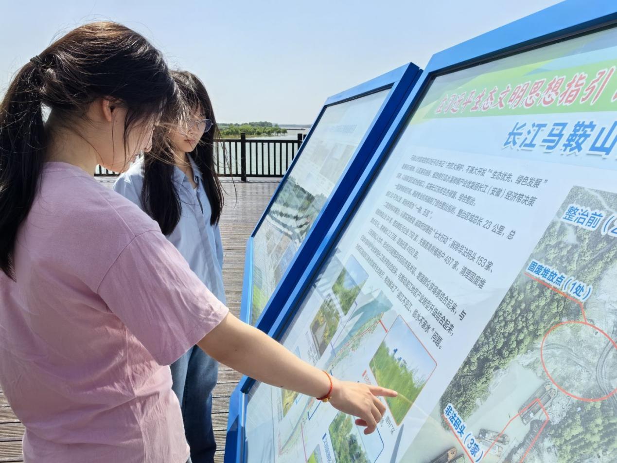 2020年8月19日上午,习近平总书记亲临薛家洼生态园考察调研,赋予马鞍山打造安徽的 “杭嘉湖”、长三角的 “白菜心” 新发展定位。总书记实地察看长江水势水情,详细了解岸线综合整治和生态环境保护修复、长江十年禁渔等工作落实情况。他强调,要增强爱护长江、保护长江的意识,实现“人民保护长江、长江造福人民” 的良性循环,早日重现“一江碧水向东流”的胜景。2025年6月16日,76net必赢线路检测中心实践队沿着习近平总书记的足迹,深入薛家洼,踏上了一场探寻生态发展密码的时间之旅。