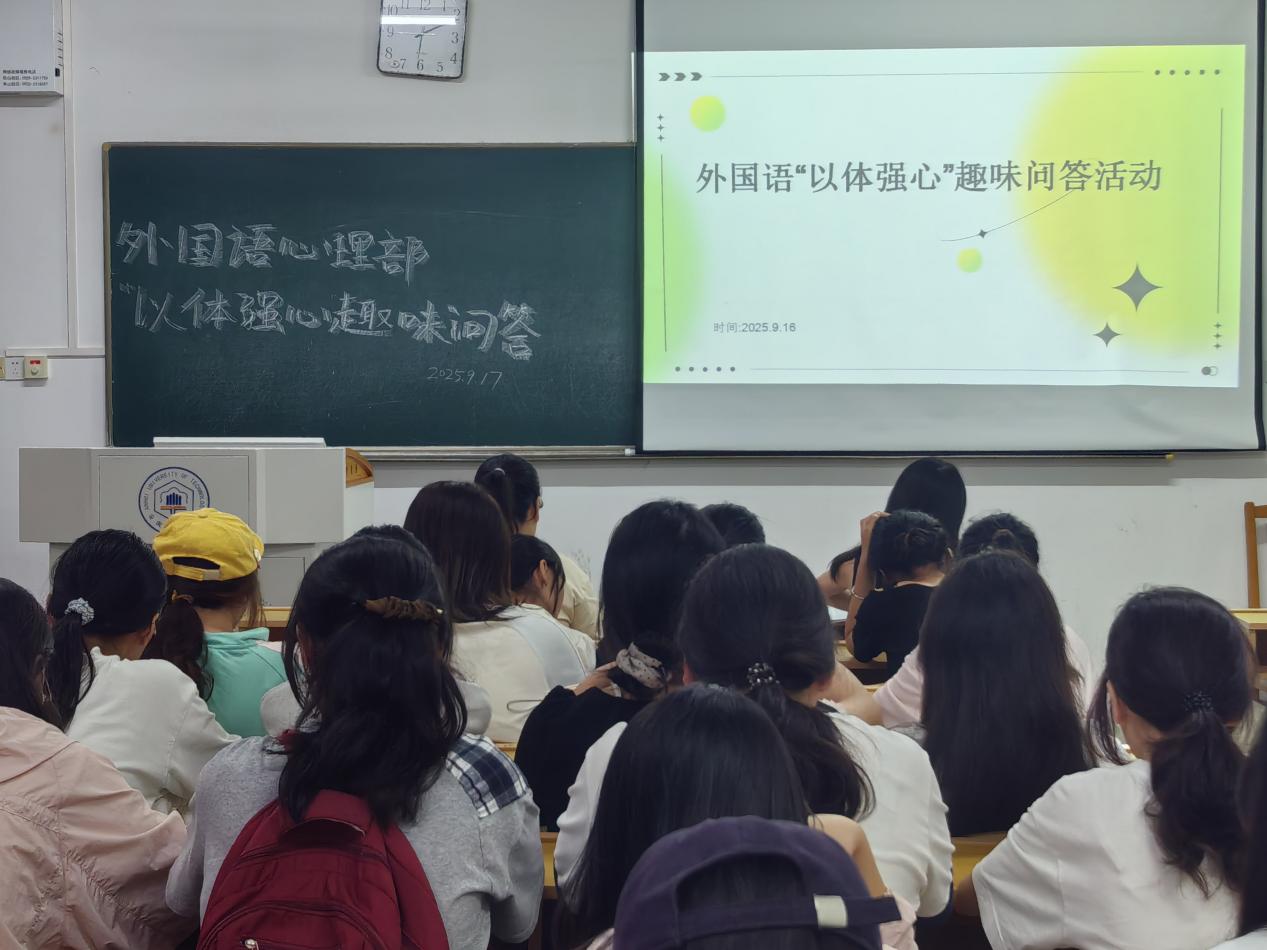 线上平台精准赋能,学院依托微信公众号“语”你谈“心”发布专题推文,为活动开展奠定良好基础。线下则聚焦实践体验,推出两大核心活动:9 月 21 日,佳山校区教一 416 举办的体育知识趣味普及问答活动,以互动问答为载体,将运动健康知识转化为趣味内容。参与者不仅系统掌握了运动后肌肉酸痛缓解、科学补水补糖等知识,学会了动态拉伸、宿舍简易拉伸等实用技巧,更在轻松氛围中释放了学业压力,实现“知识提升 + 压力缓解”双重收获。