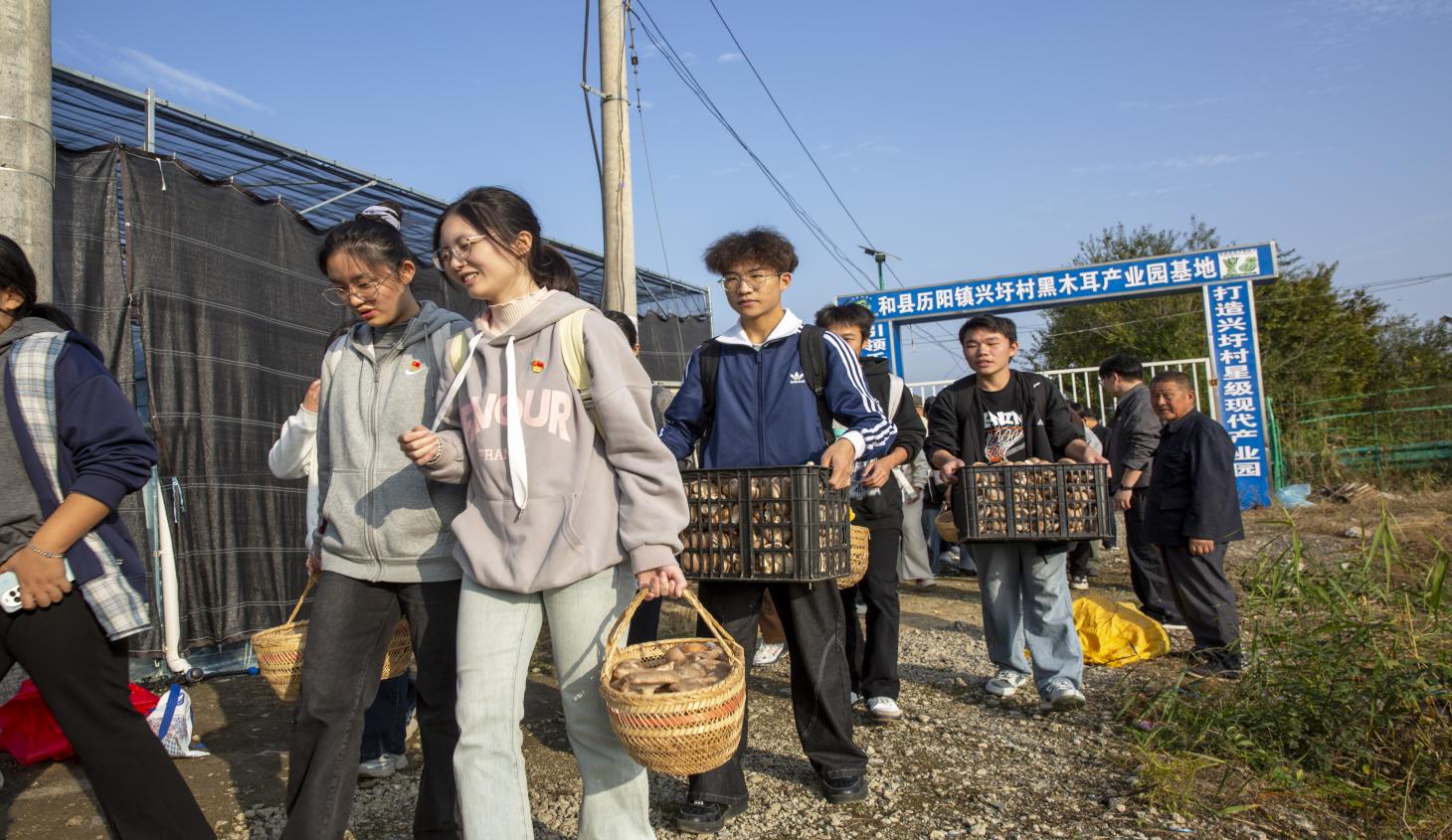 捐赠仪式后,在驻村干部黄宁辉的引导下,同学们参观了村产业园,了解了兴圩村在乡村振兴战略下的发展历程与取得的成就,切身感受乡村的巨大变化。随后,同学们深入种植基地,开展了义务劳动。大家分工协作,采摘成熟的香菇,在挥洒汗水中体验劳动的艰辛与光荣。通过亲身体验,新生班干部们深刻认识到自身所肩负的社会责任,增强了服务人民、奉献国家的使命感。他们纷纷表示,将把此次活动的所见所感、所思所悟带回班级,分享给更多同学,引导大家珍惜劳动成果,锤炼过硬本领,将个人成长融入时代发展洪流。