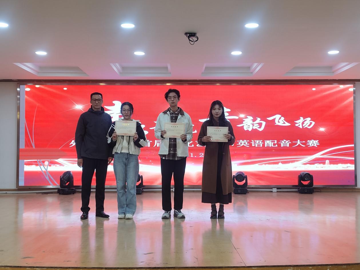 配音比赛中,选手们秉持“以声传情、以音达意”的创作理念,以纯正地道的发音、富于变化的语调和饱满的情感投入,将《疯狂动物城》《哈利·波特》《冰雪奇缘》等经典影视片段中的人物生动再现于舞台。他们不仅展现出扎实的英语语言能力,更通过声音细腻刻画角色内心,真正实现了“声临其境”的艺术效果。选手们细腻的角色塑造、默契的团队配合、富有感染力的舞台表现,一次次赢得现场评委与观众的热烈掌声。经过激烈角逐,大赛最终评选出一等奖1名、二等奖2名、三等奖3名。