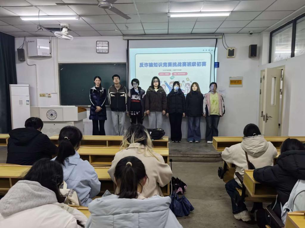 竞赛紧扣校园高频诈骗场景,题目覆盖电信诈骗类型、防范技巧、相关法规及个人信息保护等核心内容。各团支部先行开展班级竞答,择优组建 10 人反诈答题小队参与院赛。比赛采用限时抢答形式,现场氛围热烈,学子们踊跃作答,在竞技比拼中深化反诈认知,让 “不轻信、不透露、不转账” 的防骗准则入脑入心。中场随机问答环节,现场同学积极参与,在轻松互动中巩固反诈知识。
