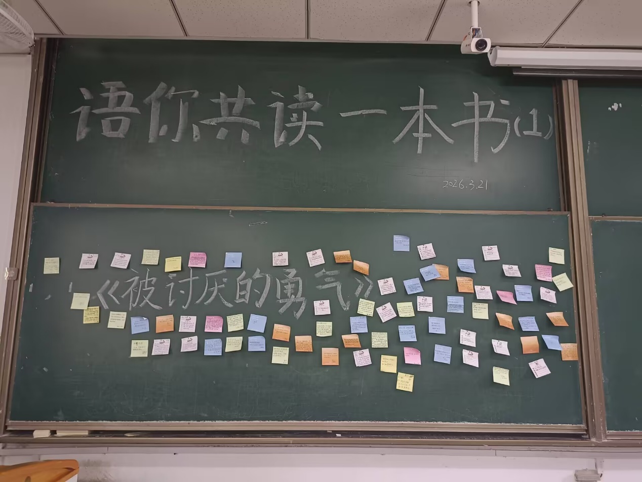 朗读结束后,同学们将阅读后的触动与反思落笔于便签之上,粘贴在黑板指定区域,汇聚成一面温暖而有力量的心声墙。有人写道,读懂“课题分离”后,终于放下了讨好他人的内耗;有人感慨,学会自我接纳,才发现不必活在他人的期待里。字里行间,既有对自我内耗的释然,也有对人际交往的新思考,更有对未来生活的坚定期许。