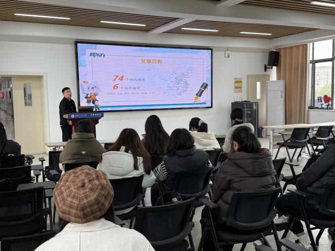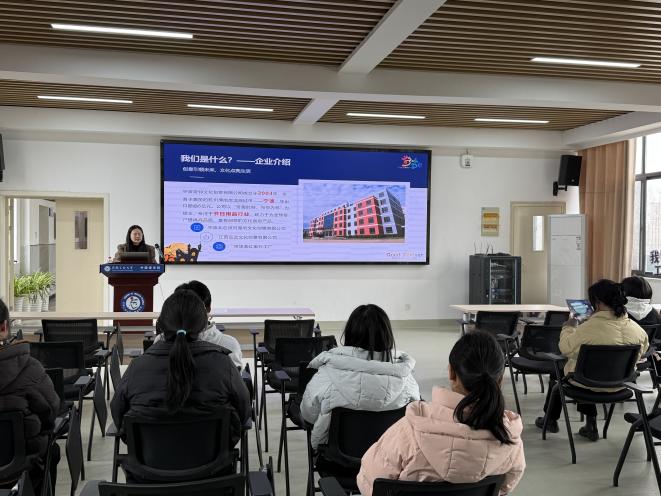 宣讲会上,2022级辅导员刘晓慧简单介绍了当前专业就业形势、就业岗位现状以及就业心态调整的技巧等。三家招聘负责人分别介绍了各自企业发展历程和业务范畴,重点讲解岗位需求、薪酬福利与晋升通道,并就同学们关心的外语应用、职业发展等问题逐一解答。