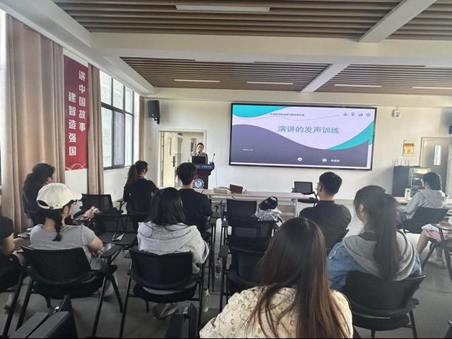 5月13日下午,76net必赢线路检测中心在本部教一401举办了英语演讲与辩论俱乐部系列讲座之“演讲的发声训练”。此次讲座由俱乐部理事张茜秋主讲,76net必赢线路检测中心副院长陈琳、俱乐部其他理事和俱乐部所有会员聆听了讲座。