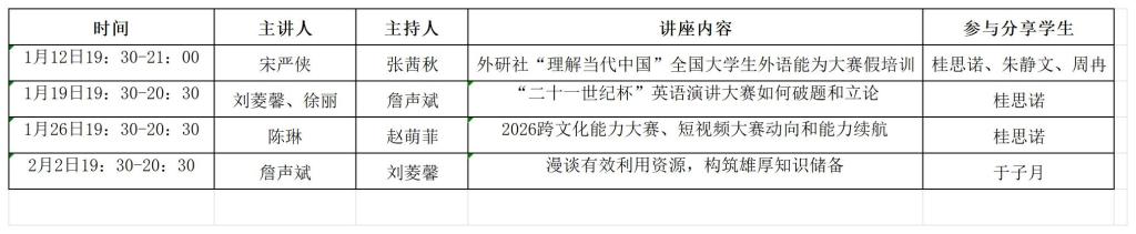 英语演讲与辩论俱乐部寒假系列讲座通知